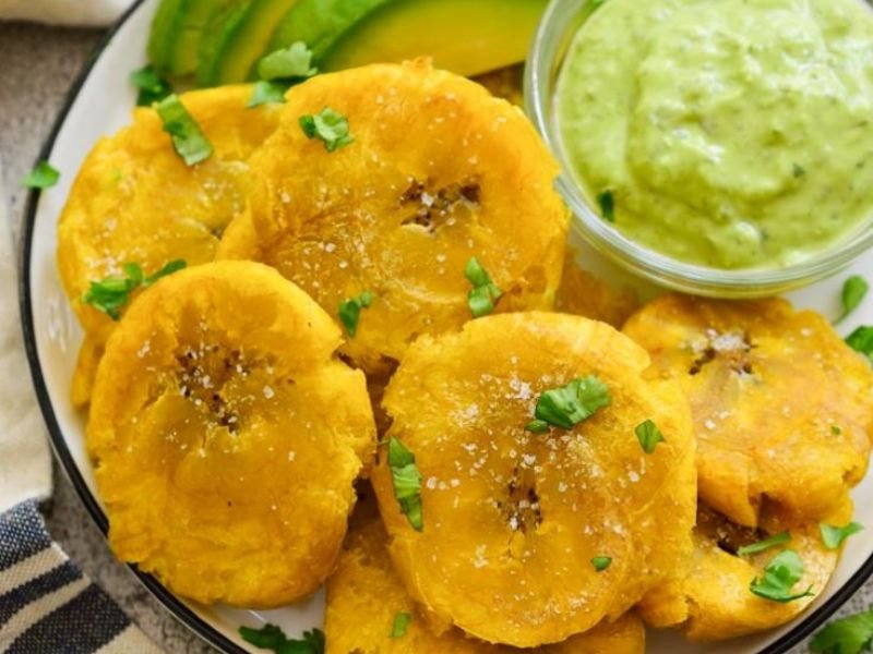 Patacones are twice-fried green plantains that become crispy on the outside and soft inside. First, the plantains are sliced and fried, then smashed and fried again. They are served as a side dish with meat, fish, or beans, and sometimes with guacamole or cheese. Patacones are very popular throughout Colombia and are often eaten at lunch or dinner. The crispy texture and mild flavor make them a favorite with both locals and visitors. They are a perfect example of Colombian food that is simple, tasty, and fun to eat, adding a crunchy touch to every meal.