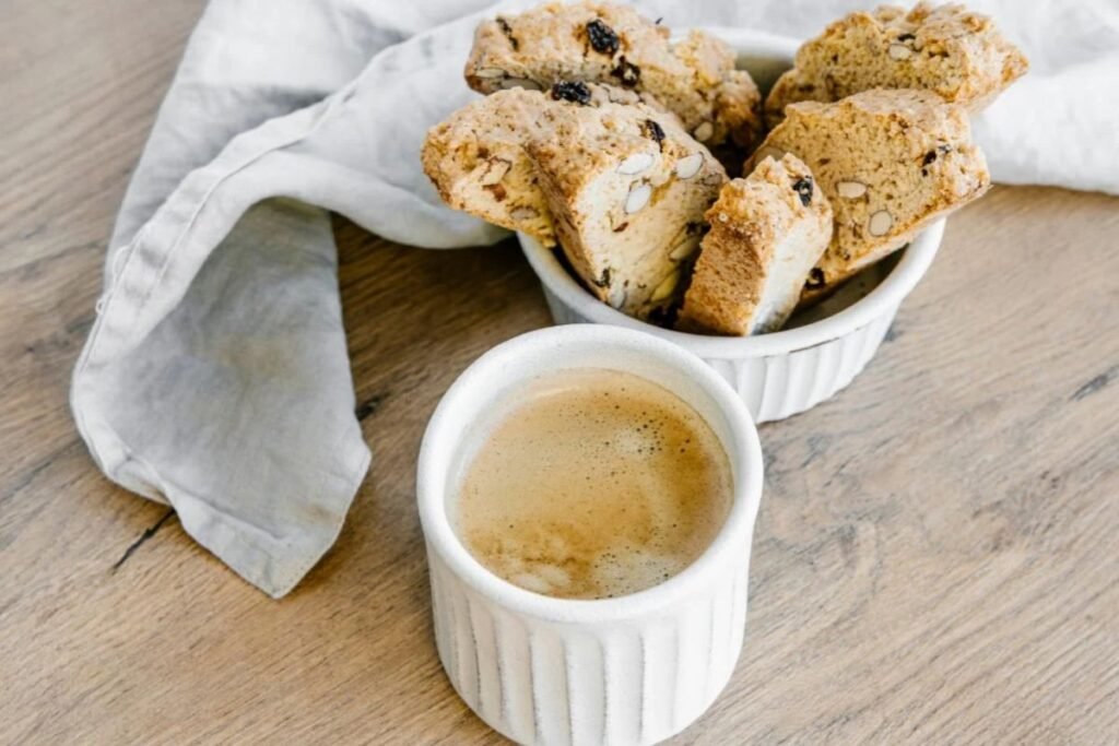 Enjoy biscotti with cappuccino, espresso, or holiday drinks like peppermint hot chocolate.