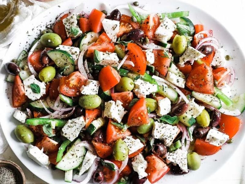 This salad doesn’t rely on fancy dressings—just pure, natural flavors. It’s refreshing, colorful, and nutritious, making it a perfect side for grilled meats or seafood. Greek salad represents the essence of Greek food: simple ingredients, prepared with care, and served with pride.