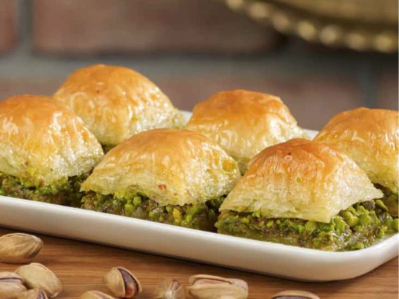 Baklava is a sweet masterpiece that highlights the indulgent side of Greek food. Made with layers of phyllo dough, chopped nuts, and honey syrup, it’s crunchy, rich, and aromatic. Each layer bakes to golden perfection, creating a texture that’s both flaky and moist.
