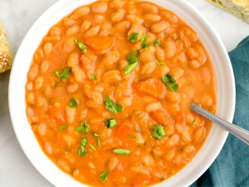 Fasolatha is a hearty bean soup that many call the national dish of Greece. This humble yet delicious meal is made with white beans, carrots, celery, and onions simmered in a tomato base. A touch of olive oil gives it richness and depth.