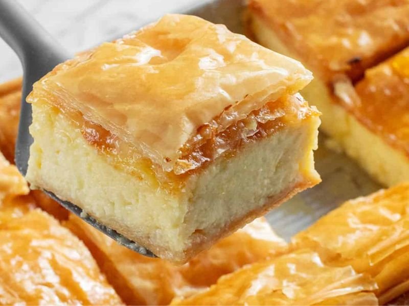 Galaktoboureko is a luscious custard dessert that shines in Greek food traditions. It’s made with semolina custard layered between sheets of crispy phyllo dough and soaked in syrup. The combination of creamy filling and golden crust is heavenly.