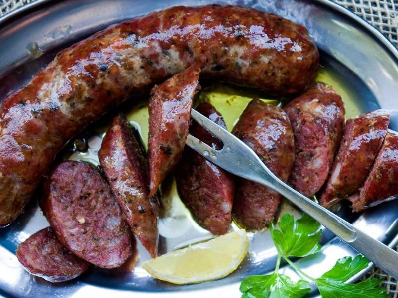 Loukaniko is a traditional Greek sausage that brings bold flavor to Greek food. Made from pork or lamb and seasoned with herbs, fennel, and orange peel, it offers a mix of smoky and citrusy notes.