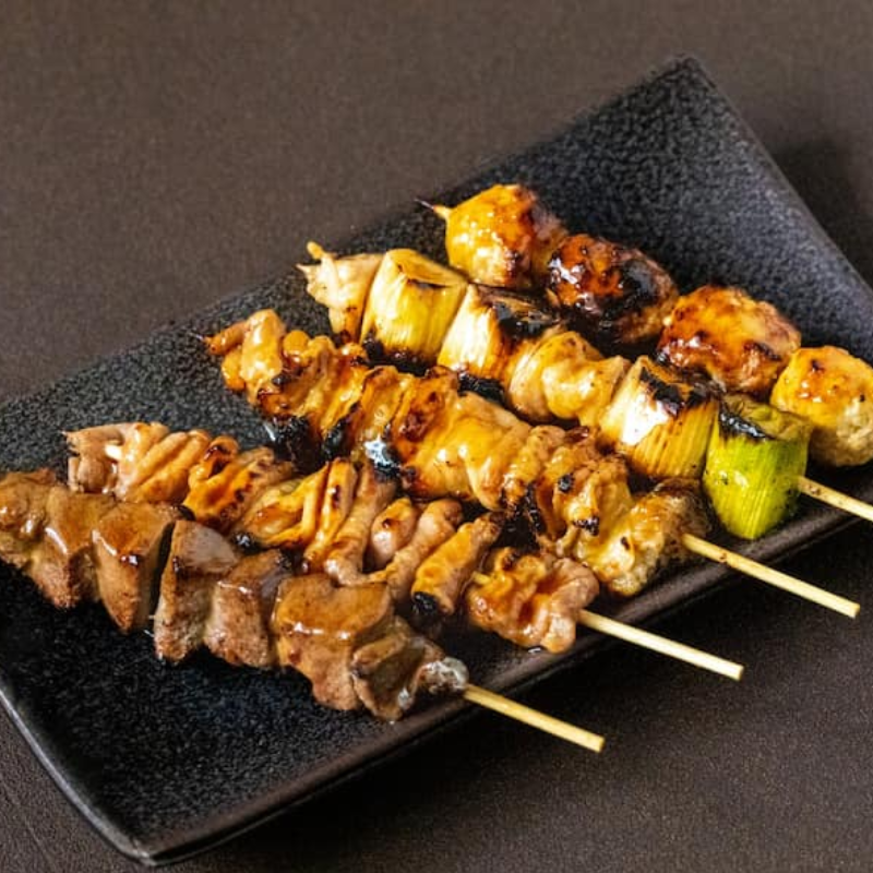 Yakitori means “grilled chicken” in Japanese. It’s skewered chicken cooked over open flame, giving it a smoky, juicy flavor similar to BBQ.