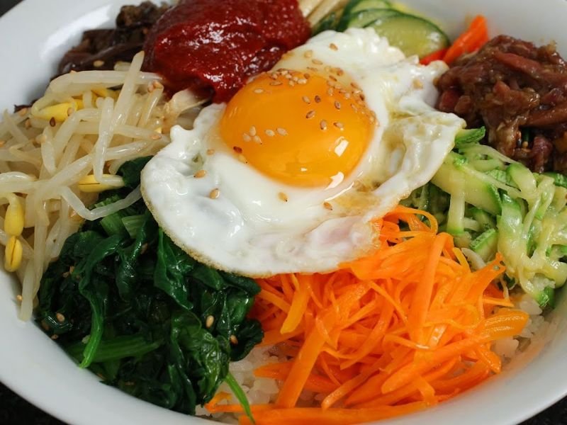 Bibimbap is one of Korea’s most iconic dishes, known for its vibrant presentation and balanced nutrition. It’s a rice bowl topped with a colorful mix of seasoned vegetables such as spinach, carrots, bean sprouts, mushrooms, and zucchini, along with sliced meat (usually beef) and a fried egg. Before eating, gochujang (Korean chili paste) is added, and everything is thoroughly mixed to combine flavors and textures. Each bite delivers a perfect harmony of spicy, savory, and slightly sweet tastes. Bibimbap not only looks beautiful but also represents the Korean philosophy of harmony in food — combining color, flavor, and nutrition in one bowl.