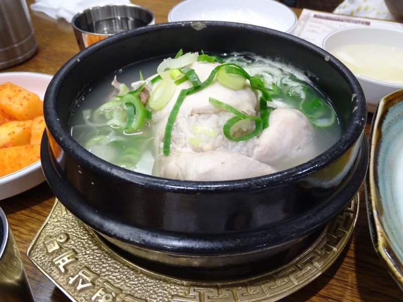 Samgyetang is a traditional Korean soup made with a whole young chicken stuffed with glutinous rice, garlic, jujubes, and ginseng. It’s simmered for hours until the broth becomes rich, aromatic, and nourishing. This dish is especially popular during the hot summer months, based on the Korean belief of “fighting heat with heat.” The ginseng adds an earthy bitterness balanced by the natural sweetness of the broth. Samgyetang is valued not just for its flavor but for its health benefits — believed to boost energy and strengthen the immune system. It’s a comforting and rejuvenating meal enjoyed across Korea.