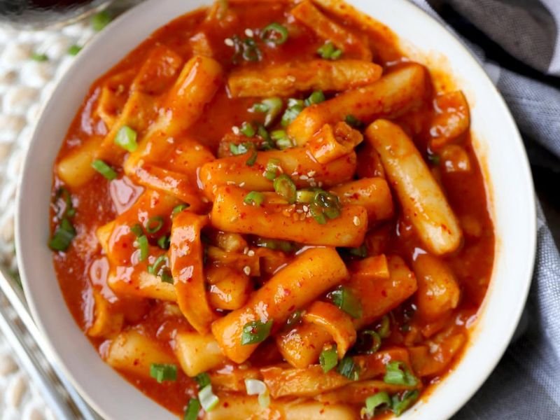 Tteokbokki is a popular Korean street food made with chewy cylindrical rice cakes stir-fried in a spicy-sweet gochujang sauce. Often combined with fish cakes, boiled eggs, and scallions, it’s a beloved comfort snack among all ages. The sauce’s deep red color and balance of heat and sweetness make it both addictive and satisfying. Tteokbokki is commonly found in street stalls across Korea and is often enjoyed with friends while chatting or as a late-night snack. The dish perfectly embodies the bold, playful side of Korean street food culture.