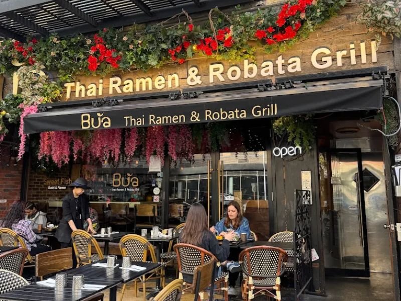 Bua Thai Ramen & Robata Grill is where Thai traditions meet Japanese techniques. It’s a cozy restaurant in New York City known for serving both authentic Thai dishes and creative fusion ramen bowls.