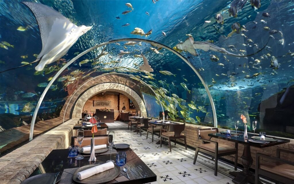 - Dining with sharks visible via the glass walls makes this memorable and dramatic.
